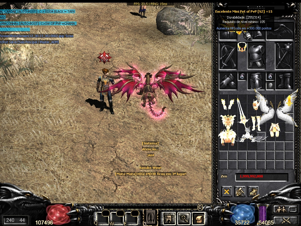 > Novo Mini Pet of PvP [Slot 2] (Confira uma foto do Pet mais abaixo) com Option de +300.000 pontos HP disponível na Silver Box of Christmas (/boxhoras2) e também adicionamos o Kit Sword Xtreme GREEN no Drop dessa mesma Box!